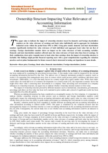 Shamki, Dhiaa and Al-Arussi, Ali (2015) Ownership structure impacting value relevance of accounting information. International Journal of Emerging Research in Management &Technology, 4 (1). pp. 5-11. ISSN 2278-9359