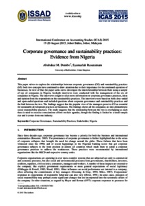 Dembo, Abubakar M. and Rasaratnam, Syamarlah (2015) Corporate governance and sustainability practices: Evidence from Nigeria. In: International Conference on Accounting Studies (ICAS) 2015, Aug 17-20, 2015, Thistle Johor Bahru Hotel, Johor, MALAYSIA.
