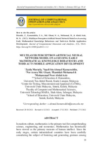 Mustafa, Zaida and Ahmad Kamaruddin, Saadi and Md Ghani, Nor Azura and Mohamad, Hamidah and Abdul Aziz, Muhammad Noor (2022) Multilayer Perceptron Artificial Neural Network Model on assessing early mathematical knowledge behaviours and Todd-Acts mobile application development. Journal of Computational Innovation and Analytics (JCIA), 01 (01). pp. 19-41. ISSN 2821-3408
