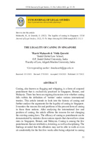 Mahaseth, Harsh and Qureshi, Shifa (2022) The legality of caning in Singapore. UUM Journal of Legal Studies (UUMJLS), 13 (2). pp. 51-76. ISSN 2229-984X