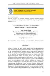 Islam, Md. Toriqul (2022) An assessment of privacy regime in Bangladesh: A legal analysis. UUM Journal of Legal Studies (UUMJLS), 13 (2). pp. 77-108. ISSN 2229-984X