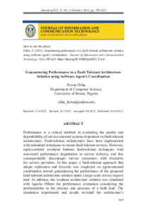 Oliha, Festus (2022) Guaranteeing Performance in a Fault Tolerant Architecture Solution using Software Agent’s Coordination. Journal of Information and Communication Technology, 21 (4). pp. 595-625. ISSN 2180-3862