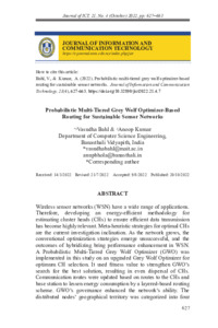 Bahl, Vasudha and Kumar, Anoop (2022) Probabilistic Multi-Tiered Grey Wolf Optimizer-Based Routing for Sustainable Sensor Networks. Journal of Information and Communication Technology, 21 (4). pp. 627-663. ISSN 2180-3862