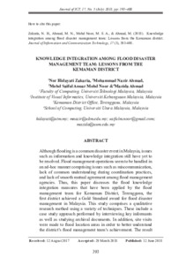 Zakaria, Nor Hidayati and Ahmad, Mohammad Nazir and Mohd Noor, Mohd Saiful Anuar and Ahmad, Mazida (2018) Knowledge Integration Among Flood Disaster Management Team: Lessons from The Kemaman District. Journal of Information and Communication Technology, 17 (3). pp. 393-408. ISSN 2180-3862