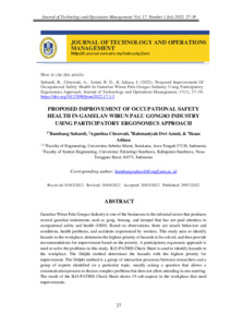 Gamelan Wirun Palu Gongso Industry is one of the businesses in the informal sector that produces several gamelan instruments such as gong, bonang, and kempul that has not paid attention to occupational safety and health (OSH). Based on observations, there are unsafe behaviors and conditions, health problems, and accidents experienced by workers. This study aims to identify hazards in the workplace, determine the highest priority of hazards to be solved, and then provide recommendations for improvement based on the priority. A participatory ergonomic approach is used to solve the problems in this study. ILO-PATRIS Check Sheet is used to identify hazards in the workplace. The Delphi method determines the hazards with the highest priority for improvement. The Delphi method is a group of interaction processes between researchers and a group of experts identified on a particular topic, usually asking a question that allows a communication process to discuss complex problems but does not allow attending in one meeting. The result of the ILO-PATRIS Check Sheet shows 19 sub-aspects in the workplace that need improvements.