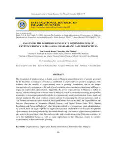Kamis, Nur Syaedah and Abd Wahab, Norazlina (2022) Analysing The Loopholes on Estate Administration of Cryptocurrency in Malaysia: Shariah and Law Perspectives. International Journal of Islamic Business (IJIB), 7 (2). pp. 65-77. ISSN 0127- 662X