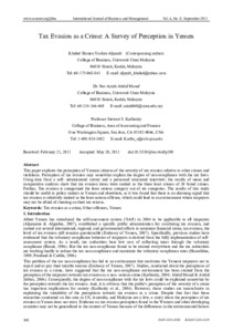 Aljaaidi, Khaled Slamen Yaslam and Abdul Manaf, Nor Aziah and Karlinsky, Stewart S. (2011) Tax Evasion as a Crime: A Survey of Perception in Yemen. International Journal of Business and Management, 6 (9). pp. 190-201. ISSN 1833-3850