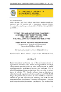 Afzal, Seema and Abdul Ghani Azmi, Ilhaamie (2022) Effect of Family-Friendly Practices on Employees’ Intention to Quit: The Mediating Role of Organizational Citizenship Behavior. International Journal of Management Studies (IJMS), 29 (1). pp. 37-82. ISSN 2180-2467
