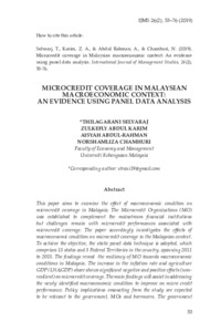 Selvaraj, Thilagarani and Abdul Karim, Zulkefly and Abdul Rahman, Aisyah and Chamhuri, Norshamliza (2019) Microcredit Coverage in Malaysian Macroeconomic Context: An Evidence Using Panel Data Analysis. International Journal of Management Studies (IJMS), 26 (2). pp. 53-76. ISSN 2180-2467
