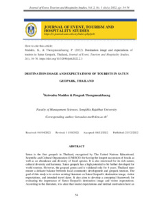 | Uncontrolled Keywords: | Destination image, Expectations, Satun Geopark |