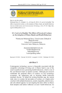 Mohamad Noor, Nurdayana and Zolkepli, Izzal Asnira and Omar, Bahiyah (2023) It’s Cool to be Healthy! The Effect of Perceived Coolness on the Adoption of Fitness Bands and Health Behaviour. Journal of Information and Communication Technology, 22 (1). pp. 97-125. ISSN 2180-3862