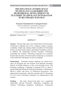 Thannimalai, Raamani and Raman, Arumugam (2018) The Influence of Principals' Technology Leadership and Professional Development on Teachers' Technology Integration in Secondary Schools. Malaysian Journal of Learning and Instruction (MJLI), 15 (1). pp. 201-226. ISSN 1675-8110