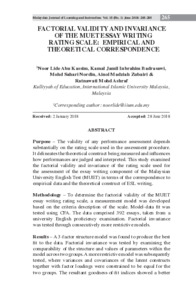 Abu Kassim, Noor Lide and Badrasawi, Kamal Jamil Inbrahim and Nordin, Mohd Sahari and Zubairi, Ainol and Mohd Ashraf, Ratnawati (2018) Factorial Validity and Invariance of the MUET Writing Rating Scale: Empirical and Theoretical Correspondence. Malaysian Journal of Learning and Instruction (MJLI), 15 (1). pp. 265-285. ISSN 1675-8110