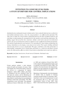 Duggal, Ekta and Verma, Harsh V. (2018) Intention to Consume Junk Food: A Study of Drivers for Control Implications. Malaysian Management Journal (MMJ), 22. pp. 109-124. ISSN 0128-6226
