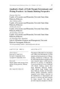 Mat Nor, Fauzias and Shaharuddin, Amir and Nawai, Norhaziah and Marzuki, Ainulashikin and Wan Abdullah, W Zainuddin (2017) Qualitative Study of Profit Margin Determinants and Pricing Practices: An Islamic Banking Perspective. International Journal of Banking and Finance (IJBF), 13 (2). pp. 43-93. ISSN 2590-423X