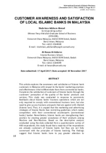 | Uncontrolled Keywords: | Customer Awareness; Customer Satisfaction; Islamic Banks; Malaysia |