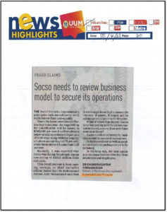 | Uncontrolled Keywords: | Socso Needs To Review Business Model To Secure Its Operations Dr. Chandrakantan Subramaniam |