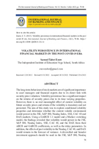 Enow, Samuel Tabot (2023) Volatility Persistence in International Financial Markets in The Post Covid-19 Era. International Journal of Banking and Finance (IJBF), 18 (2). pp. 79-96. ISSN 2590-423X