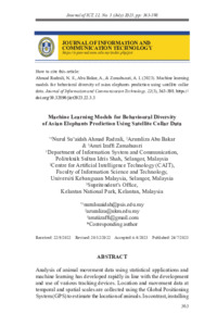 Ahmad Radzali, Nurul Su'aidah and Abu Bakar, Azuraliza and Zamahsasri, Amri Izaffi (2023) Machine Learning Models for Behavioural Diversity of Asian Elephants Prediction Using Satellite Collar Data. Journal of Information and Communication Technology, 22 (3). pp. 363-398. ISSN 2180-3862