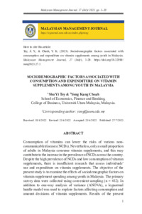 Shu, Yi Tey and Yong, Kang Cheah (2023) Sociodemographic Factors Associated with Consumption and Expenditure on Vitamin Supplements Among Youth in Malaysia. Malaysian Management Journal (MMJ), 27. pp. 1-20. ISSN 0128-6226