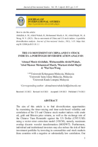 Abdullah, Ahmad Monir and Abdul Wahab, Hishamuddin and Mohammed Masih, Abul Mansur and Abdul Majid, Mariani and Wong, Wai-Yan (2023) The Co-Movement of China and US Stock Indices: A Portfolio Diversification Analysis. Journal of International Studies (JIS), 19 (1). pp. 1-35. ISSN 1823-691X