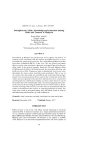 Abdul Mutalib, Rozita and Ahmad, Zalinah and Mohd. Othman, Fazilah and Arshad, Rozita (2017) Perception on Crime: Knowledge and Awareness among Males and Females in Malaysia. Journal of Governance and Development (JGD), 13 (1). pp. 159-169. ISSN 2289-4756