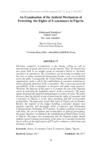 Nuruddeen, Muhammad and Yusof, Yuhanif and Abdullah, Nor Anita (2017) An Examination of the Judicial Mechanism of Protecting the Rights of E-consumers in Nigeria. Journal of Governance and Development (JGD), 13 (2). pp. 75-98. ISSN 2289-4756