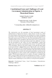 Garuba, Rasheed Obasekore and Ameen, Abdullateef (2017) Constitutional Issues and Challenges of Local Government Administration in Nigeria: A Theoretical Discuss. Journal of Governance and Development (JGD), 13 (2). pp. 217-229. ISSN 2289-4756