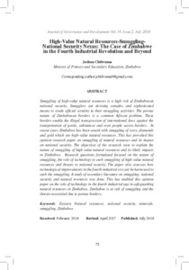 Chibvuma, Joshua (2018) High-Value Natural Resources-Smuggling-National Security Nexus: The Case of Zimbabwe in the Fourth Industrial Revolution and Beyond. Journal of Governance and Development (JGD), 14 (2). pp. 75-80. ISSN 2289-4756