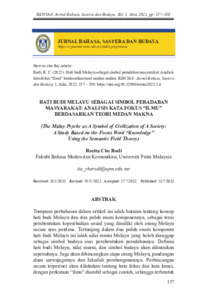 | Uncontrolled Keywords: | Hati budi Melayu, akal budi, pandangan alam sarwa jagat, medan makna, kata fokus, kata kunci, keperibadian sosial |
