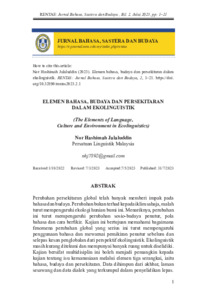 Jalaluddin, Nor Hashimah (2023) Elemen Bahasa, Budaya Dan Persekitaran Dalam Ekolinguistik. RENTAS: Jurnal Bahasa, Sastera dan Budaya, 2 (1). pp. 1-21. ISSN 2976-3126