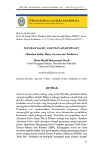 Mohammad Yusoff, Mohd Haniff and Ahmad Sabri, Ahmad Zaharuddin Sani (2023) Manikam Kalbu: Adat Dan Adab Melayu. RENTAS: Jurnal Bahasa, Sastera dan Budaya, 2 (1). pp. 55-73. ISSN 2976-3126