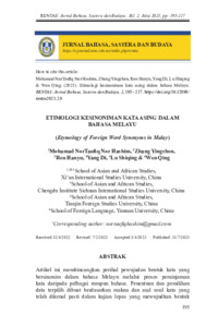 Damin, Zahrul Akmal and Ani, Fauziah and Hanyu, Ren and Di, Yang and Qing, Wen and UNSPECIFIED (2023) Etimologi Kesinoniman Kata Asing Dalam Bahasa Melayu. RENTAS: Jurnal Bahasa, Sastera dan Budaya, 2 (1). pp. 195-217. ISSN 2976-3126