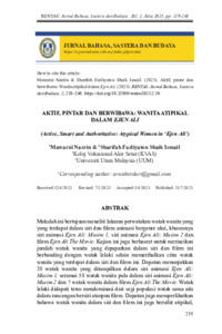 Makalah ini bertujuan meneliti lakaran perwatakan watak wanita yang yang terdapat dalam siri dan filem animasi bergenre aksi, khususnya siri animasi Ejen Ali: Musim 1, siri animasi Ejen Ali: Musim 2 dan filem Ejen Ali The Movie. Kajian ini juga berhasrat untuk merincikan jumlah watak wanita yang dipaparkan dalam siri dan filem ini berbanding dengan watak lelaki selain memerihalkan citra watak wanita yang terdapat dalam siri dan filem ini. Dapatan menunjukkan 38 watak wanita yang ditampilkan dalam siri animasi Ejen Ali: Musim 1, seramai 58 watak wanita pula dalam siri animasi Ejen Ali: Musim 2 dan 7 watak wanita dalam filem Ejen Ali The Movie. Watak lelaki didapati terus mendominasi dari segi populasi watak sama ada dalam rancangan bersiri ataupun filem. Dapatan juga memperlihatkan bahawa watak wanita dalam siri dan filem ini juga bersifat atipikal, khususnya aktif, bijak, mempunyai sifat pemimpin, berkerjaya dalam bidang sains dan kejuruteraan, cantik dan kurus, agresif, lasak serta bertentangan dengan stereotaip gender yang tradisional.