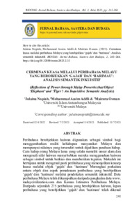 Peribahasa berobjekkan haiwan digunakan sebagai simbol bagi menggambarkan realiti kehidupan masyarakat Melayu dan mempunyai nilainya yang tersendiri untuk dijadikan panduan hidup. Cara hidup orang Melayu lama yang selalu meneliti unsur alam dan mengenali sifat haiwan menyebabkan mereka menggunakan haiwan sebagai simbol untuk berkias dan memberikan teguran. Makalah ini bertujuan untuk mengenal pasti peribahasa yang menonjolkan konsep kuasa melalui objek ‘gajah’ dan ‘harimau’ Merungkai perkaitan antara objek dan aspek pemaknaan peribahasa yang berobjekkan ‘gajah’ dan ‘harimau’ melalui pendekatan semantik inkuisitif. Data peribahasa Melayu telah dikumpulkan daripada pangkalan data www.malaycivilization.com dan Kamus Istimewa Peribahasa Melayu. Daripada sejumlah 275 peribahasa yang berobjekkan haiwan, lapan peribahasa yang berobjekkan ‘gajah’ dan ‘harimau’ telah dikenal pasti mengandungi kuasa sebagai aspek pemaknaannya. Kajian ini mengaplikasikan pendekatan Rangka Rujuk Silang (RRS) dan pendekatan semantik inkuisitif dalam penganalisisan data. Data yang diperoleh telah diperkukuh dengan hasil janaan data korpus yang menunjukkan persamaan antara ciri-ciri fizikal yang dipunyai oleh haiwan tersebut dengan konsep kekuasaan yang terdapat dalam elemen pemaknaannya. Kekuatan gajah yang terletak kepada ‘saiznya’, manakala kekuatan harimau pula terletak kepada ‘ ‘belangnya’. Kekuatan bagi kedua-dua haiwan ini, telah menyebabkan masyarakat Melayu menganalogikannya sebagai cerminan kekuasaan dalam peribahasa. Gabungan data, teori, falsafah dan budaya yang terdapat dalam semantik inkuisitif menjadi medan dalam dapat menghasilkan huraian makna yang merungkai perkaitan antara objek peribahasa yang digunakan dengan elemen pemaknaannya.