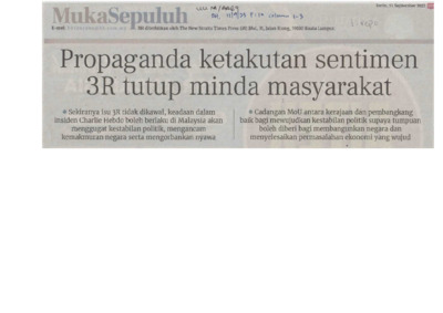 Mohd Sani, Mohd Azizuddin (2023) Propaganda Ketakutan Sentimen 3R Tutup Minda Masyarakat. Propaganda Ketakutan Sentimen 3R Tutup Minda Masyarakat. p. 10.
