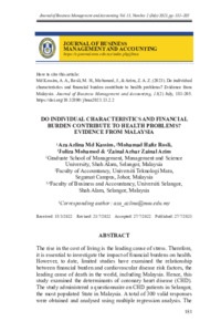 Md Kassim, Aza Azlina and Rosli, Mohamad Hafiz and Mohamed, Juliza and Zainal Azim, Zainal Azhar (2023) Do Individual Characteristics and Financial Burden Contribute to Health Problems? Evidence from Malaysia. Journal of Business Management and Accounting (JBMA), 13 (2). pp. 181-205. ISSN 2231-9298 (e2636-9249)