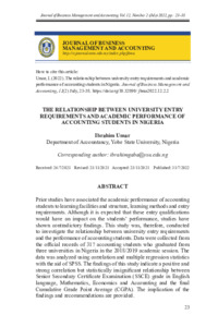 Umar, Ibrahim (2022) The Relationship Between University Entry Requirements and Academic Performance of Accounting Students in Nigeria. Journal of Business Management and Accounting (JBMA), 12 (2). pp. 23-38. ISSN 2231-9298 (e2636-9249)