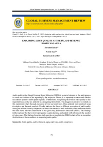 Zainal, Zuriahati and Saad, Natrah and Zainol Arrifin, Zaimah (2022) Exploring audit quality at the Inland Revenue Board Malaysia. Global Business Management Review (GBMR), 14 (2). pp. 76-88. ISSN 2180-2416