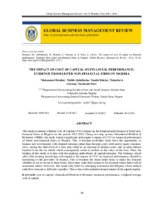 Ibrahim, Mohammed and Abdulkarim, Habib and Muktar, Jamila and Gurama, Zakariya'u and Peter, Zachariah (2021) The Impact of Cost of Capital on Financial Performance: Evidence from Listed Non-Financial Firms in Nigeria. Global Business Management Review (GBMR), 13 (2). pp. 18-34. ISSN 2180-2416