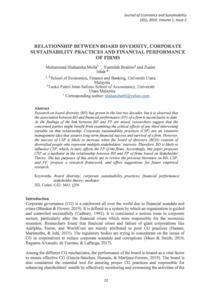 | Uncontrolled Keywords: | Board diversity, corporate sustainability practices,; financial performance, stakeholder theory, mediator |