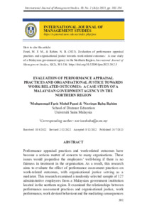 Mohd Pauzi, Muhammad Faris and Baba Rahim, Norizan (2023) Evaluation Of Performance Appraisal Practices and Organisational Justice Towards Work-Related Outcomes: A Case Study of a Malaysian Government Agency in The Northern Region. International Journal of Management Studies (IJMS), 30 (2). pp. 301-336. ISSN 2232-1608