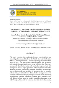 | Uncontrolled Keywords: | Operational risk, Financial performance, MENA region |