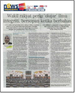 | Uncontrolled Keywords: | Wakil Rakyat Perlu 'Diajar' Ilmu Integriti, Bersopan Ketika Berbahas, Prof Madya Dr Halimah Abdul Manaf |
