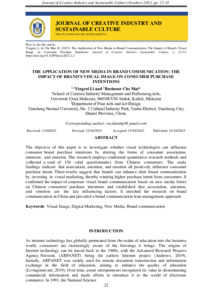 Li, Yingrui and Che Mat, Ruzinoor (2023) The Application of New Media in Brand Communication: The Impact of Brand's Visual Image on Consumer Purchase Intentions. Journal of Creative Industry & Sustainable Culture (JCISC), 2. pp. 22-33. ISSN 2976-2480
