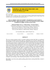 Che Ya, Mohamad Shukri and Shaari, Nazlina and Mansor, Noranita (2023) Visual Observation of Women’s Traditional Baju Kurung Pattern Grading Arrangement Layout on Existing Batik Fabric to Reduce Fabric Waste in Malaysia. Journal of Creative Industry & Sustainable Culture (JCISC), 2. pp. 66-80. ISSN 2976-2480