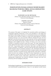 Mithani, Dawood Ali M. and Chong, Say Lee (2013) Innovation in Malaysian Wood Based Manufacturing Firm: An Illuminating Case Study. International Postgraduate Business Journal (IPBJ), 5 (SI(1)). pp. 1-28. ISSN 2180-2416