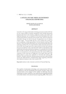 | Uncontrolled Keywords: | disclosure index, dimension and Internet Financial Reporting |