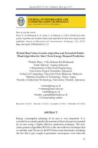 Musa, Wahab and Ku Mahamud, Ku Ruhana and Salim, Sardi and Sediyono, Agung (2024) Hybrid Real-Value-Genetic-Algorithm and Extended-Nelder- Mead Algorithm for Short Term Energy Demand Prediction. Journal of Information and Communication Technology, 23 (1). pp. 25-47. ISSN 2180-3862