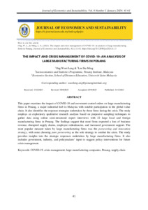 Ong, Wooi Leng and Lee, Siu Ming (2024) The Impact and Crisis Management of Covid-19: An Analysis of Large Manufacturing Firms in Penang. Journal of Economics and Sustainability (JES), 6 (1). pp. 41-61. ISSN 2637-1294